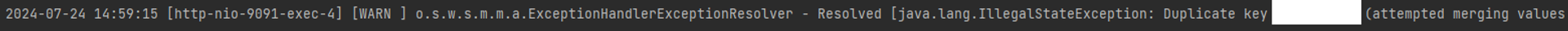 java.lang.IllegalStateException: **Duplicate key 'key로 저장하려는 값'** (attempted merging values ~~)